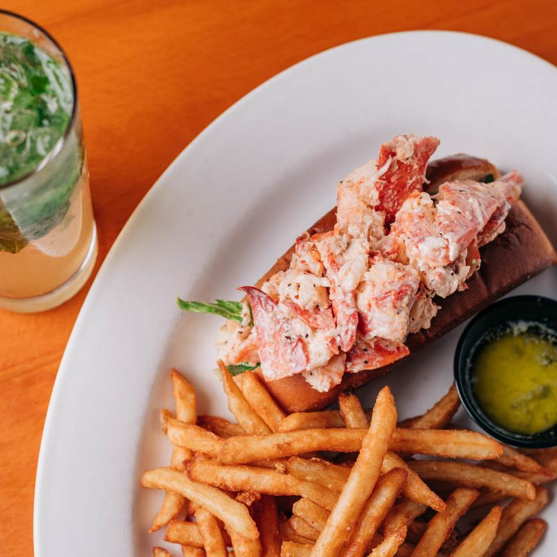 Chilled lobster on a warm New England-style bun, mayo, and melted butter, served with fries.