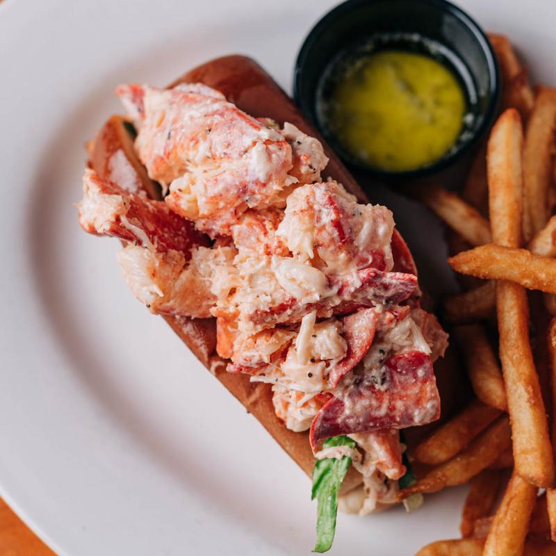Chilled lobster on a warm New England-style bun, mayo, melted butter, and celery, served with fries.