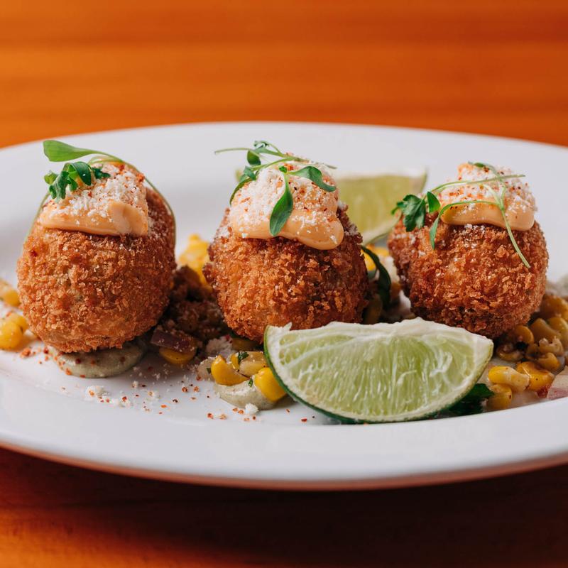 Fried risotto balls stuffed with pork sausage, garlic, peppers, onions, cajun spice, served with dijonnaise.